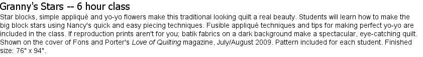 ideal class, for anyone who wants to improve their piecing skills. Pattern included for each student. Quilt size: 42" x 42".